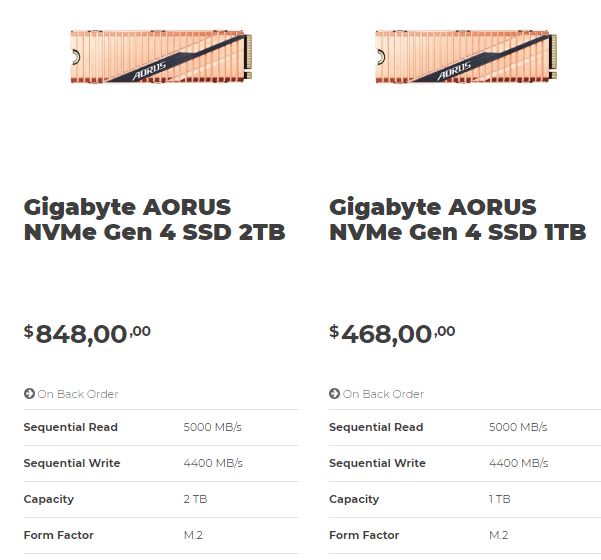 Магазин Computer Lounge в Новой Зеландии уже выставил на свою виртуальную витрину накопители Aorus с новым поколением интерфейса, снабдив их ценниками для предварительного заказа. Ассортимент состоит из моделей объёмом 1 Тбайт и 2 Тбайт, соответственно.