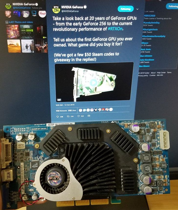 Видеокарта GeForce 256 была представлена 31 августа 1999 года, но в продажу поступила только 11 октября того же года. Эту дату NVIDIA взяла за точку отсчёта истории всего семейства GeForce, а потому на корпоративной странице в Twitter провела конкурс среди владельцев раритетных видеокарт данной марки, раздавая купоны на право скачивания игры в Steam номиналом $50 каждый.