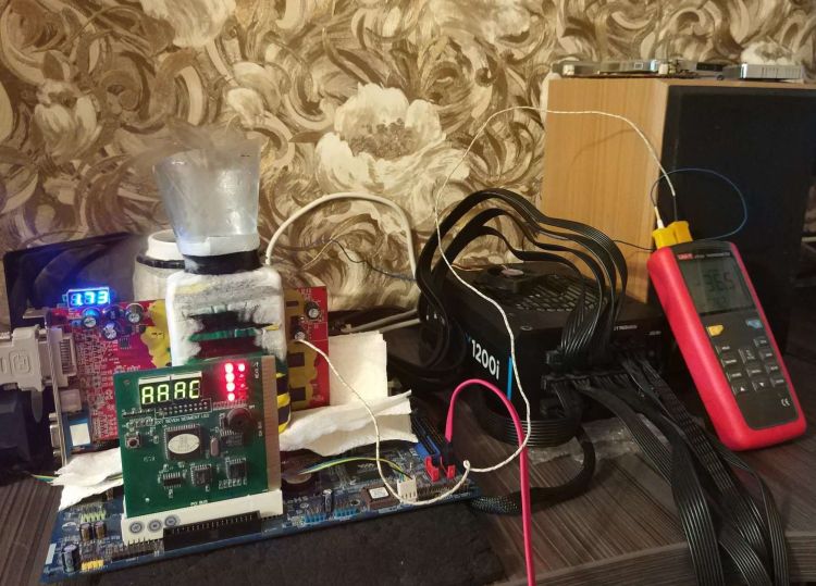 Центральный процессор Intel Core 2 Extreme QX9650 был разогнан в материнской плате ASRock 4CoreDual-SATA2 до 4.2 ГГц под жидким азотом. Материнская плата к эксперименту тоже готовилась тщательным образом. Были модифицированы напряжения на центральном процессоре, оперативной памяти и чипсете. Все ответственные элементы были оснащены дополнительными радиаторами, а окрестности процессорного разъёма были укрыты пористым теплоизоляционным материалом, чтобы избежать прямого воздействия конденсата.