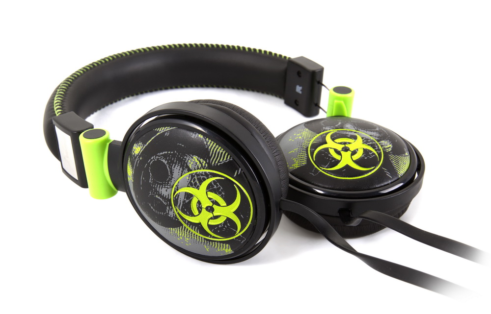 Первое, что бросается в глаза – дизайн. Чашечки из мягчайшей искусственной кожи с тиснеными на них трендовыми значками радиоактивной и биологической опасности, соответственно, не оставят равнодушными поклонников Fallout и Метро 2033. Оголовье выполнено из аналогичного материала с сохранением стиля, которому соответствует и упаковка.