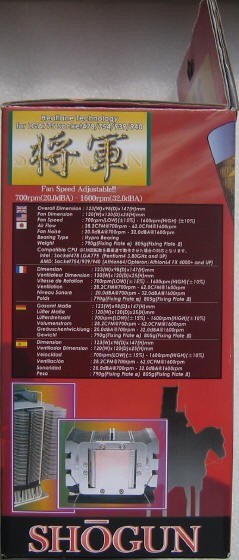 В переводе иероглифов я пока особыми знаниями не блистаю (да что уж греха таить – совсем не знаю я их :)), но вот самая нижняя строка на английском, расположенная на лицевой стороне коробки, ярлыке, а также одной из боковых сторон, меня заинтересовала – "CPU Radiator with 120mm FAN". Дело в том, что несмотря на наличие огромного вентилятора, Scythe позиционирует данное устройство охлаждения прежде всего как радиатор для процессора, а не как кулер. Интересно... но нужно будет проверить.