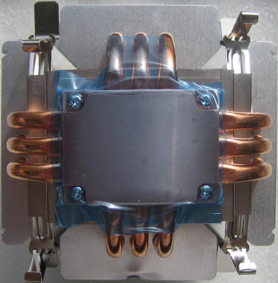 Основание кулера закрыто защитной наклейкой, призванной предохранять его от случайных царапин или повреждений: