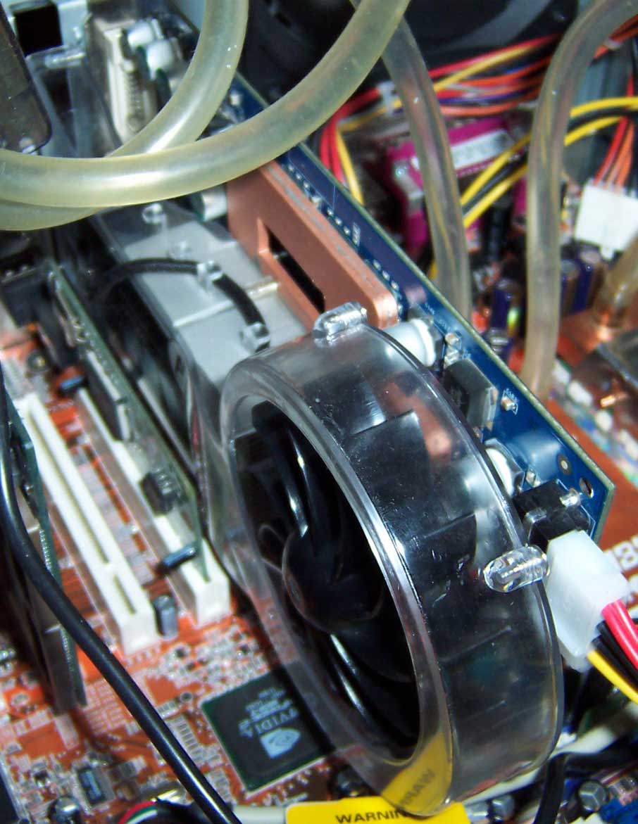 Ну что ж, посмотрим, на что способна наша новая самодельная система. Но прежде чем переходить к тестам, расскажу маленькую историю установки кулера на карту. Вот так оно выглядит, когда готово: