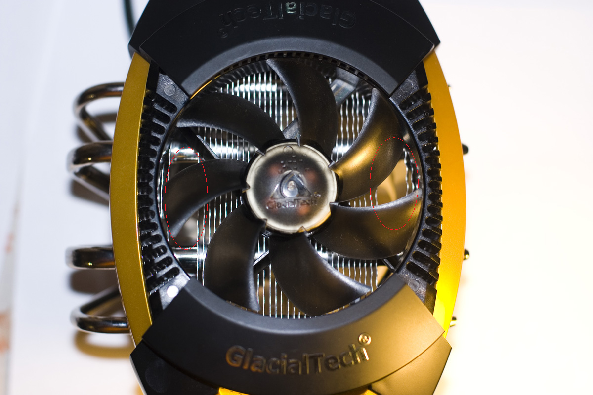 Честно говоря, я не понимаю предназначения промежутков между 5 боковыми рёбрами радиатора и его основным массивом, ведь этот участок не находится в мёртвой зоне и прекрасно продувается вентилятором.