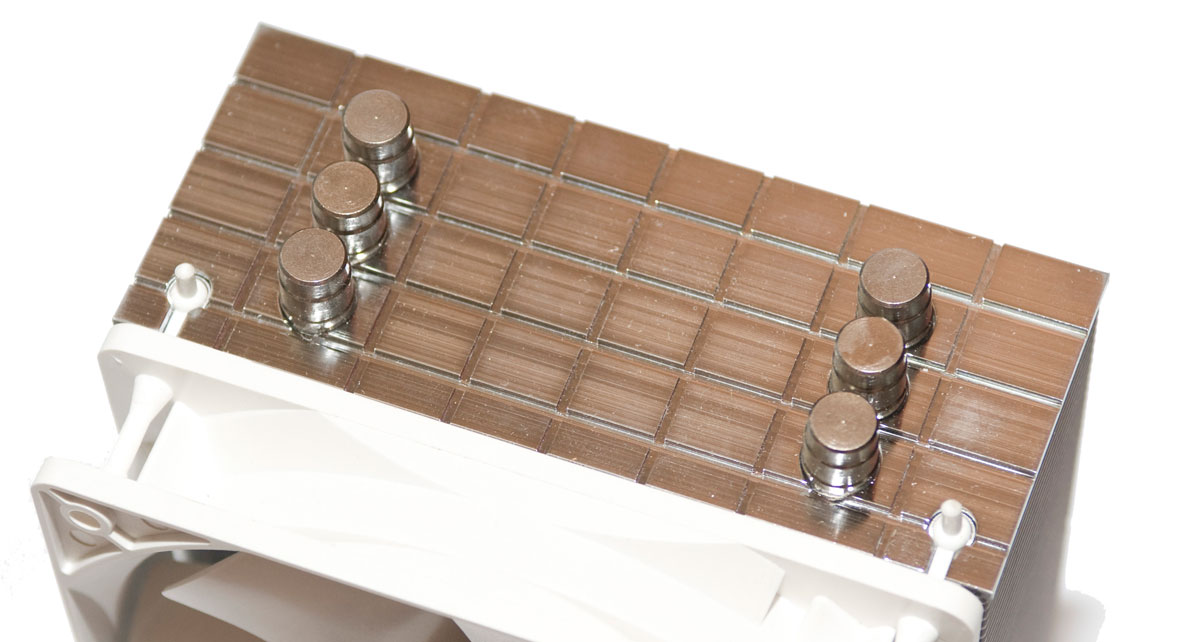 Расстояние между вентилятором и ребрами 2 мм. Каждая проставка снабжена хвостами, упрощающими их извлечение: