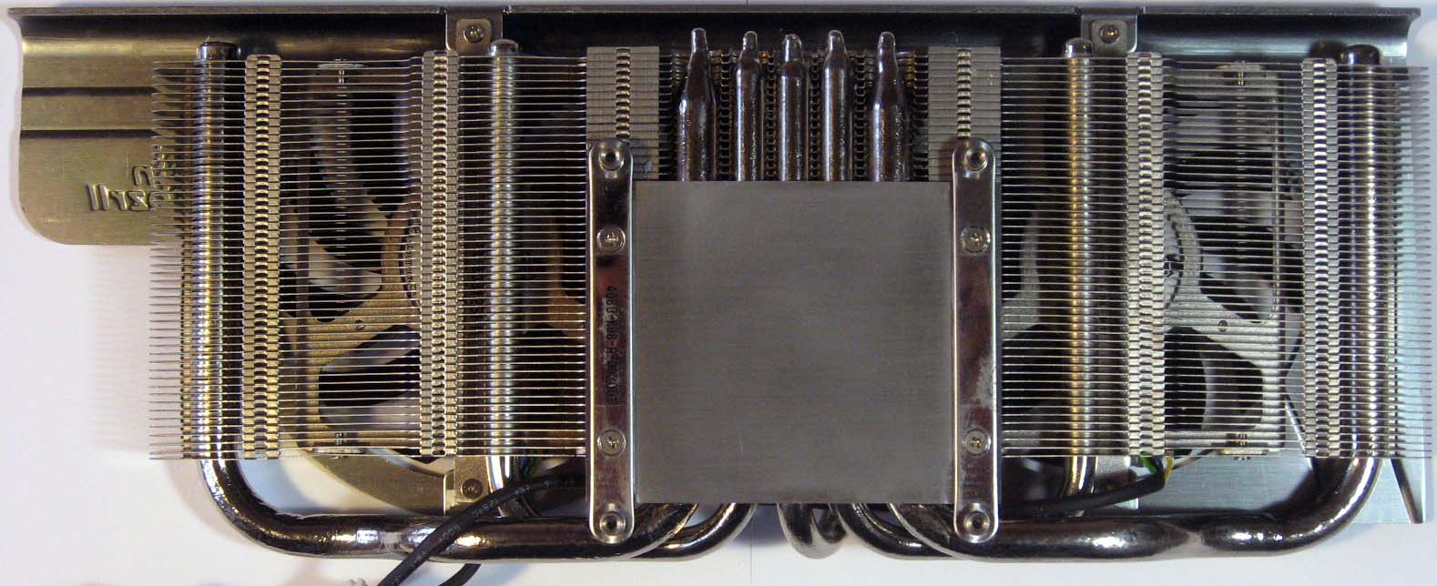 Качество обработки основания всё так же не вызывает восторга, однако к ровности претензий нет. Контакт основания кулера с графическим процессором на сей раз не вызывает нареканий.