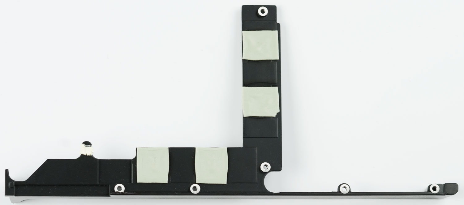 При разборке карты видно, что функции пластины чисто "защитные" (предохранять от повреждений обилие мелких элементов на обратной стороне печатной платы), так как тепловой контакт каких-либо деталей с крышкой отсутствует: