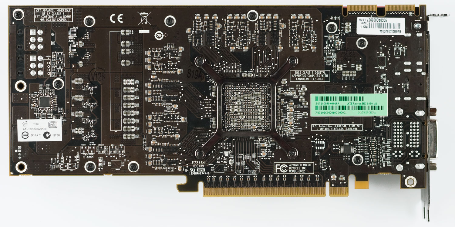 На первый взгляд, HD 5850 отличается от старшего брата (HD 5870) немного: меньшими габаритами (240 х 110 х 30 мм) и расположением разъемов дополнительного питания, которые теперь расположились в одном из задних отверстий в кожухе карты.