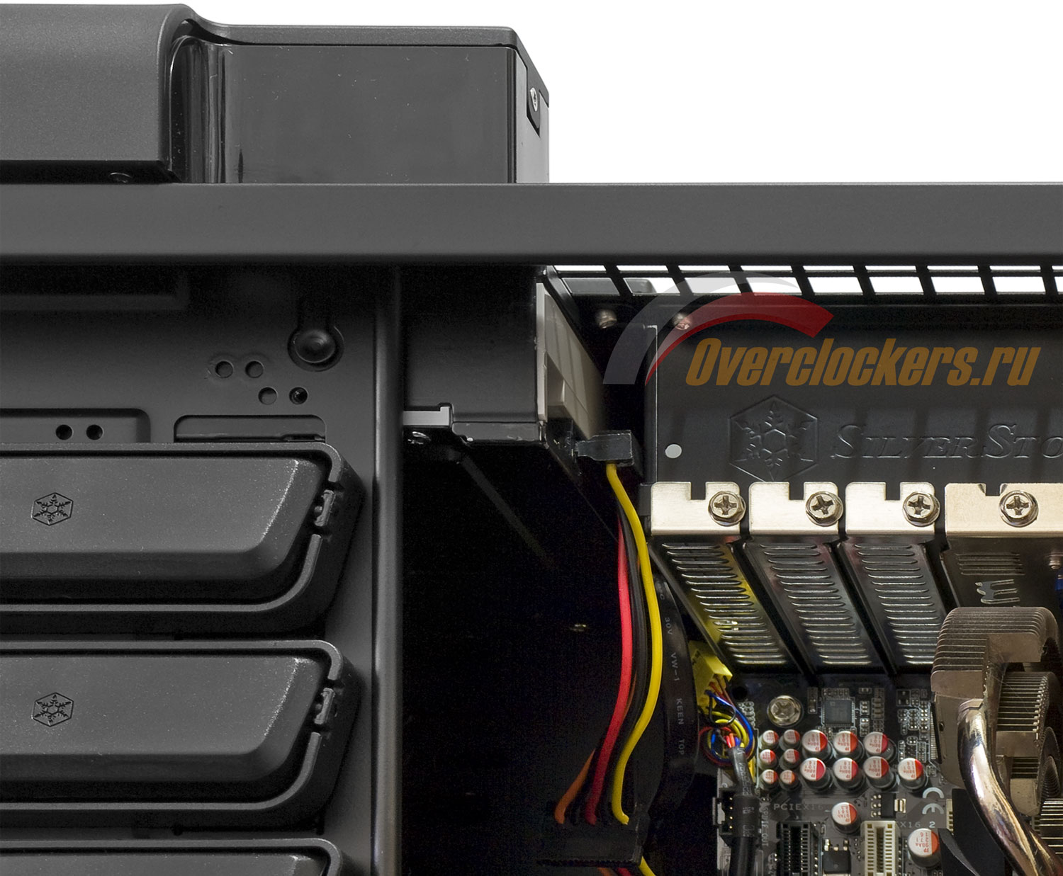 Но инженеры SilverStone предпочли перестраховаться – все-таки нестандартное «висячее» положение. А блоки питания в таких системах порой используют тяжелые... Как наш стендовый Enermax Revolution :).