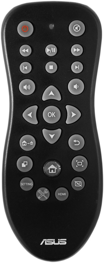 Данное устройство, как и пульт, несет на себе логотип ASUS. Подключение приемника осуществляется посредством стандартного USB разъема. Добавим, что помимо собственно приемника сигналов пульта, эта деталь системы содержит еще и датчик освещенности. Расчет понятен, приемник, скорее всего, будет размещен неподалеку от экрана телевизора, именно там, где следует измерять уровень освещенность для подстройки яркости. В связи с этим, стоит отметить, что длина шнура составляет 120 см. Могло бы быть и побольше, ведь если компьютер используется не только в качестве мультимедийного центра, но и как обычная машина с отдельным монитором, то расстояние между телевизором и системным блоком может быть гораздо более значительным. Впрочем, это придирки, сложно представить, что уровень освещенности будет сильно различаться в разных углах комнаты, так что разместить датчик можно там, где удобнее. Для работы с пультом предусмотрена специальная мультимедийная среда ASUS Bravo Media Center.