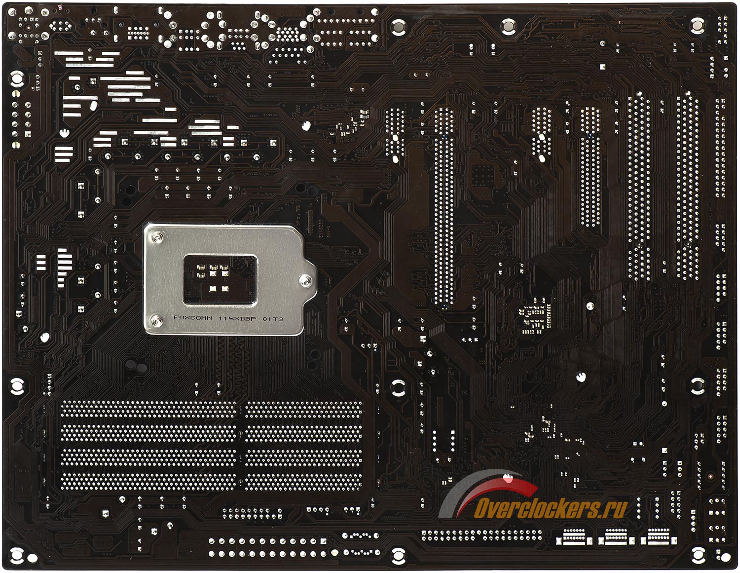 И, конечно, не является универсальным решением: хоть с размещением на плате самых массивных процессорных систем охлаждения в таком положении проблем быть и не должно (благо процессорный разъем от ближайшего PCI-E отодвинут достаточно далеко), но сам сокет Intel LGA 1156 оснащен стальной пластиной снизу, которая помешает воспользоваться большинством креплений для LGA 775, использующих backplate (монтажная крестовина с обратной стороны платы).