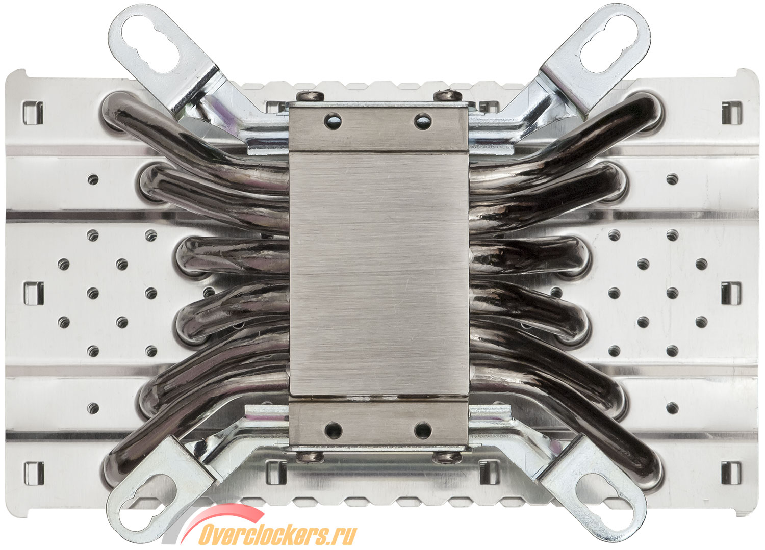Все эти решения интересны и действительно могут улучшить эффективность рассеивания пластинами тепла. Но сначала его на них нужно передать. И вот расположение тепловых трубок, на мой взгляд, уже не такое удачное. Они «растянуты» по всей ширине ребер, но продольно сдвинуты относительно друг друга совсем незначительно. В том же ThermoLab baram2010 трубки распределены не в пример равномернее.