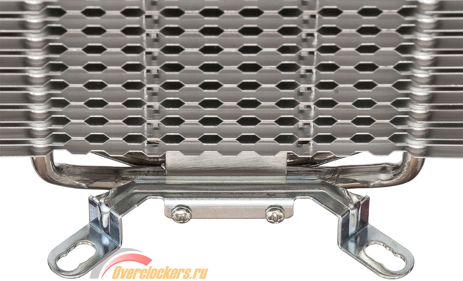 Кроме того, в пластинах выштампованы своеобразные «петли» и выбито множество круглых отверстий. Производитель утверждает, что это обеспечивает радиатору «дышащий эффект». Что бы это ни значило.