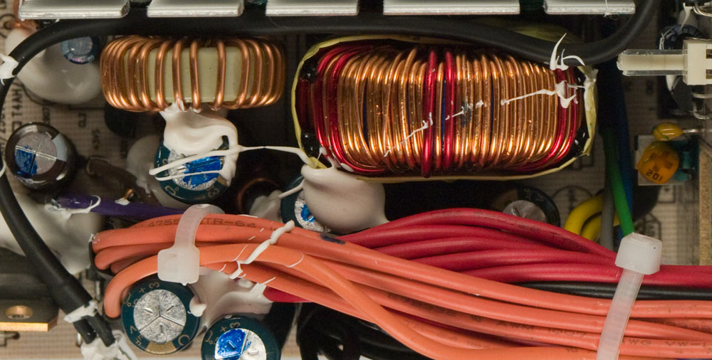 По сравнению с вышеописанными моделями упрощение налицо - штампованные алюминиевые радиаторы, "свободный" монтаж компонентов. Радует тот факт, что в стремлении удешевить модель не тронули такие узлы, как блок регулировки оборотов вентилятора и входной фильтр.