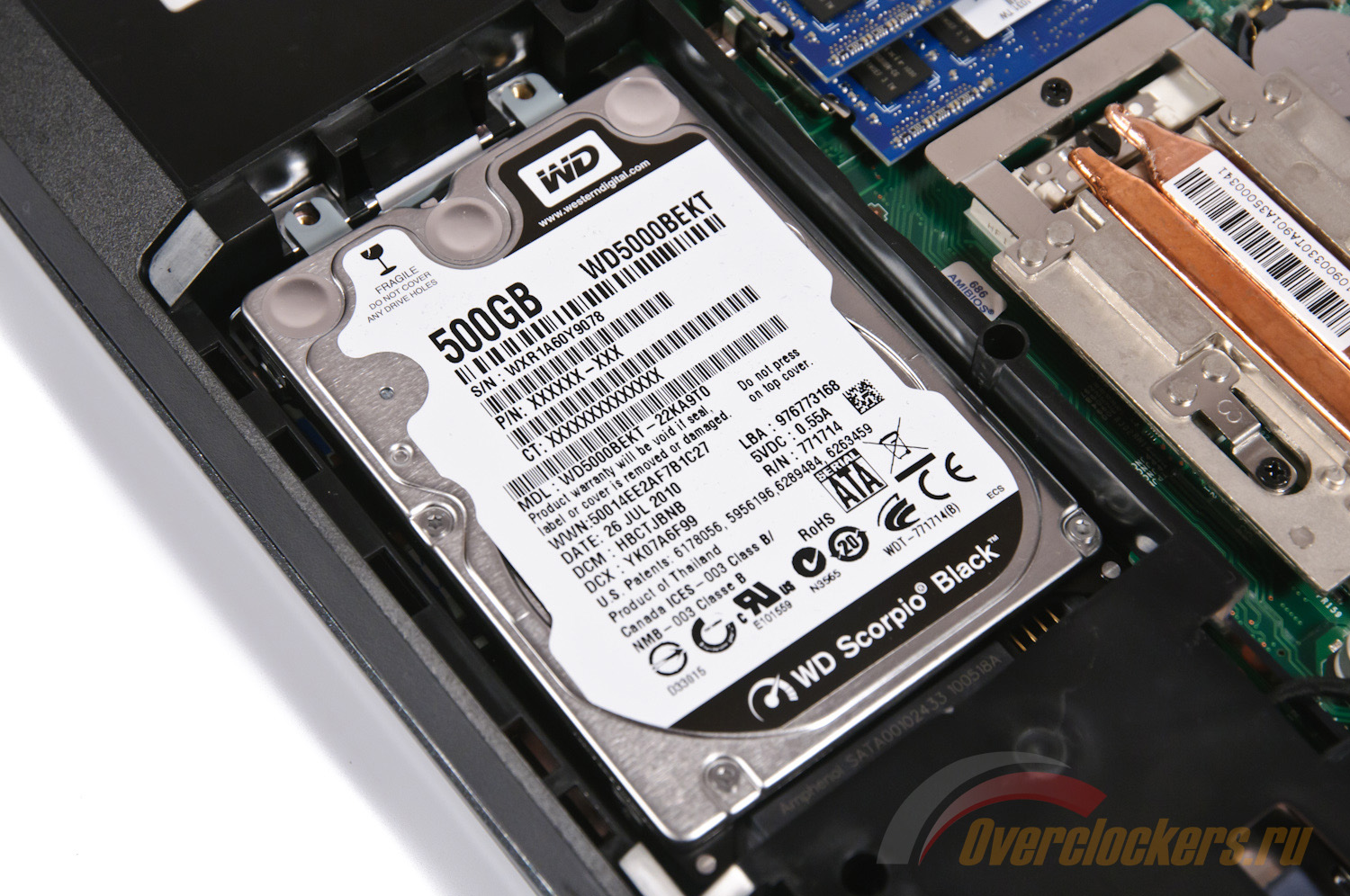 Жёсткий диск, установленный в MSI GX660 изготовлен компанией Western Digital (WD). Модель WD5000BEKT-22KA9 относится к высокопроизводительной линейке Scorpio Black. Её объём составляет 500 Гбайт. Форм-фактор 2,5 дюйма.