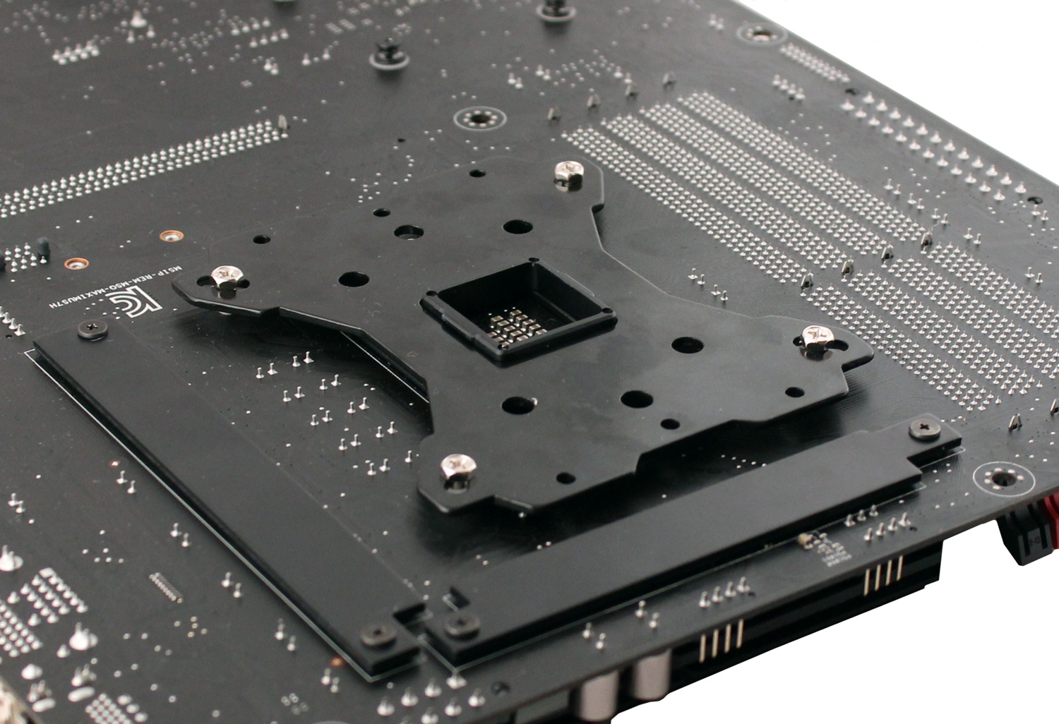 Первым делом необходимо установить крепежную пластину (backplate), вставить в нее винты, а сверху на них закрепить пластиковые шайбы. В комплекте присутствует два набора шайб, но спутать их проблематично: те, что с большим диаметром, используются для установки на платформы AMD.