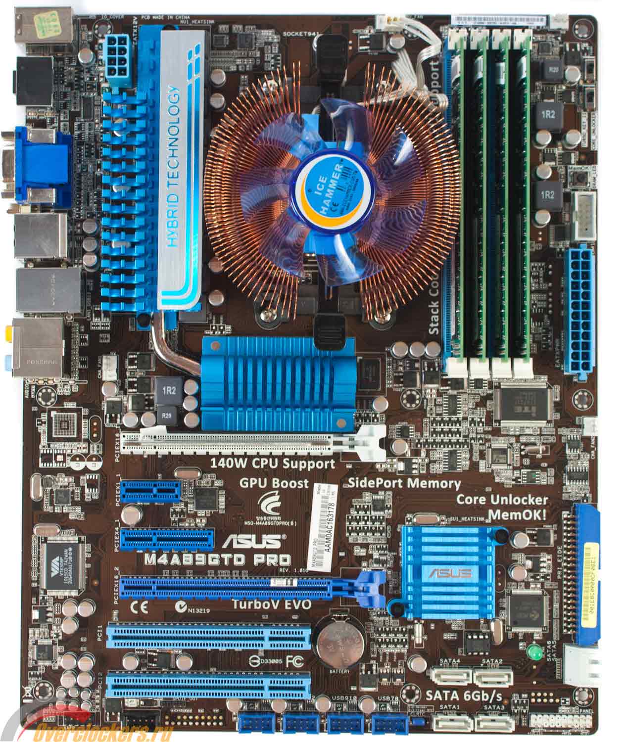 За основу взята платформа AMD. Материнская плата - Asus M4A89GTD Pro, рассмотренная в лаборатории чуть менее года назад. Модель показала себя превосходно, и по итогам даже заслужила награду Enthusiasts Choice. Логика AMD 890GX + SB850 вкупе с дополнительными контроллерами обеспечивает исчерпывающий функционал и набор портов ввода-вывода.