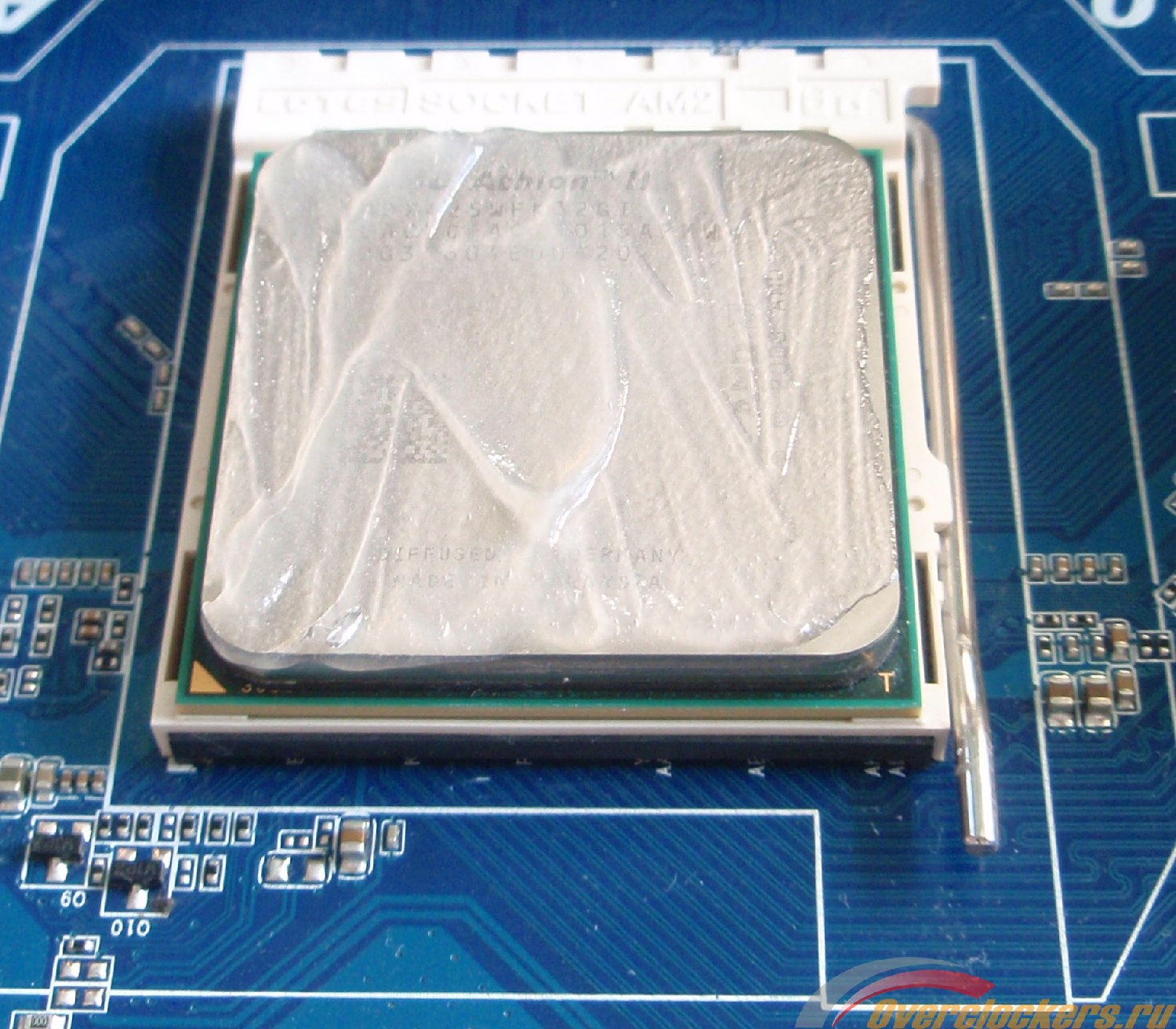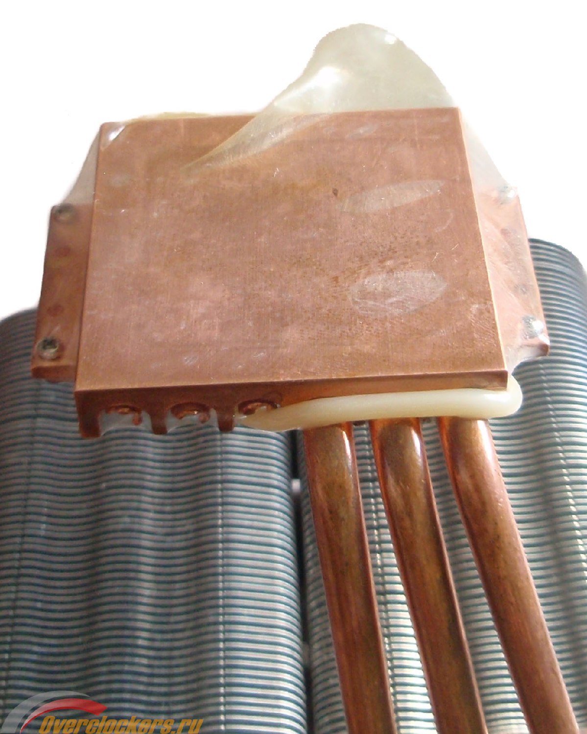 Размазывать этот соус по процессору было одно удовольствие: ложится ровно и быстро. Масса упаковки данного «Премиума» составляла 210 грамм – должно хватить надолго, если вы решите использовать сей продукт в качестве постоянного термоинтерфейса. Еще один немаловажный факт – после тестирования майонезом основание радиатора слегка поменяло свой цвет в результате процесса окисления.