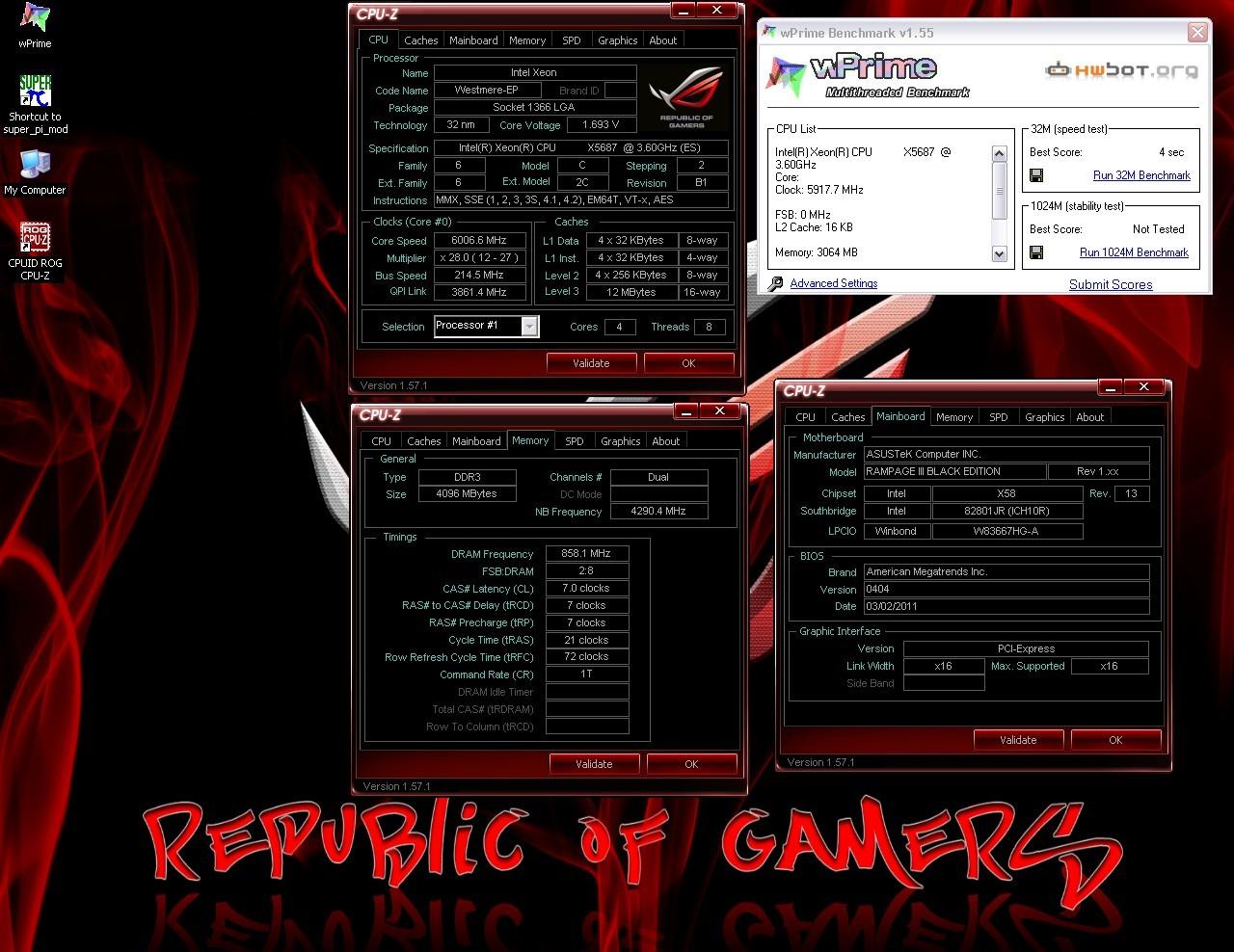 wPrime 32M удалось посчитать на 6 ГГц, а результат оказался равным 4 секундам: