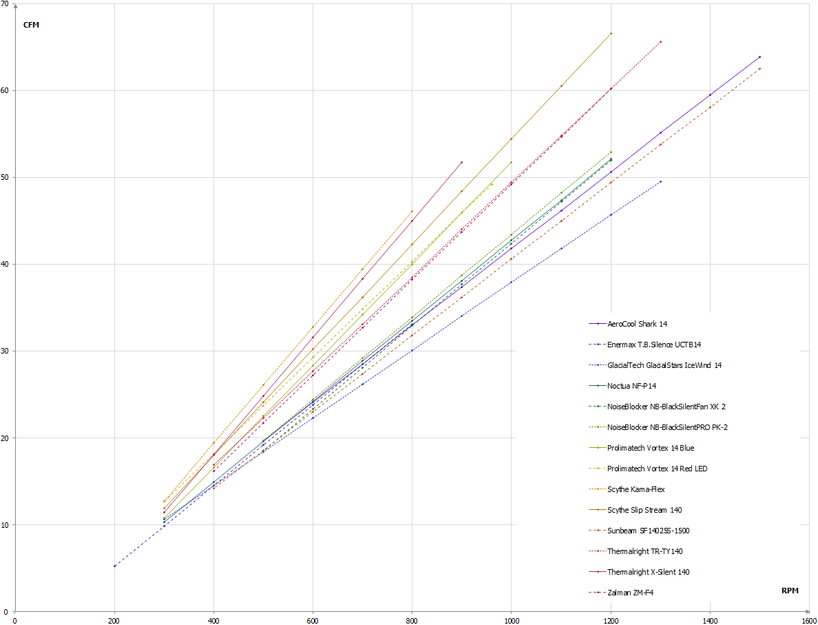 Воздушный поток, CFMЭто особенно обидно, ведь расход вторая «стосороковка» Thermalright также обеспечивает просто отличный, уступая по этому параметру лишь Scythe Kama-Flex.