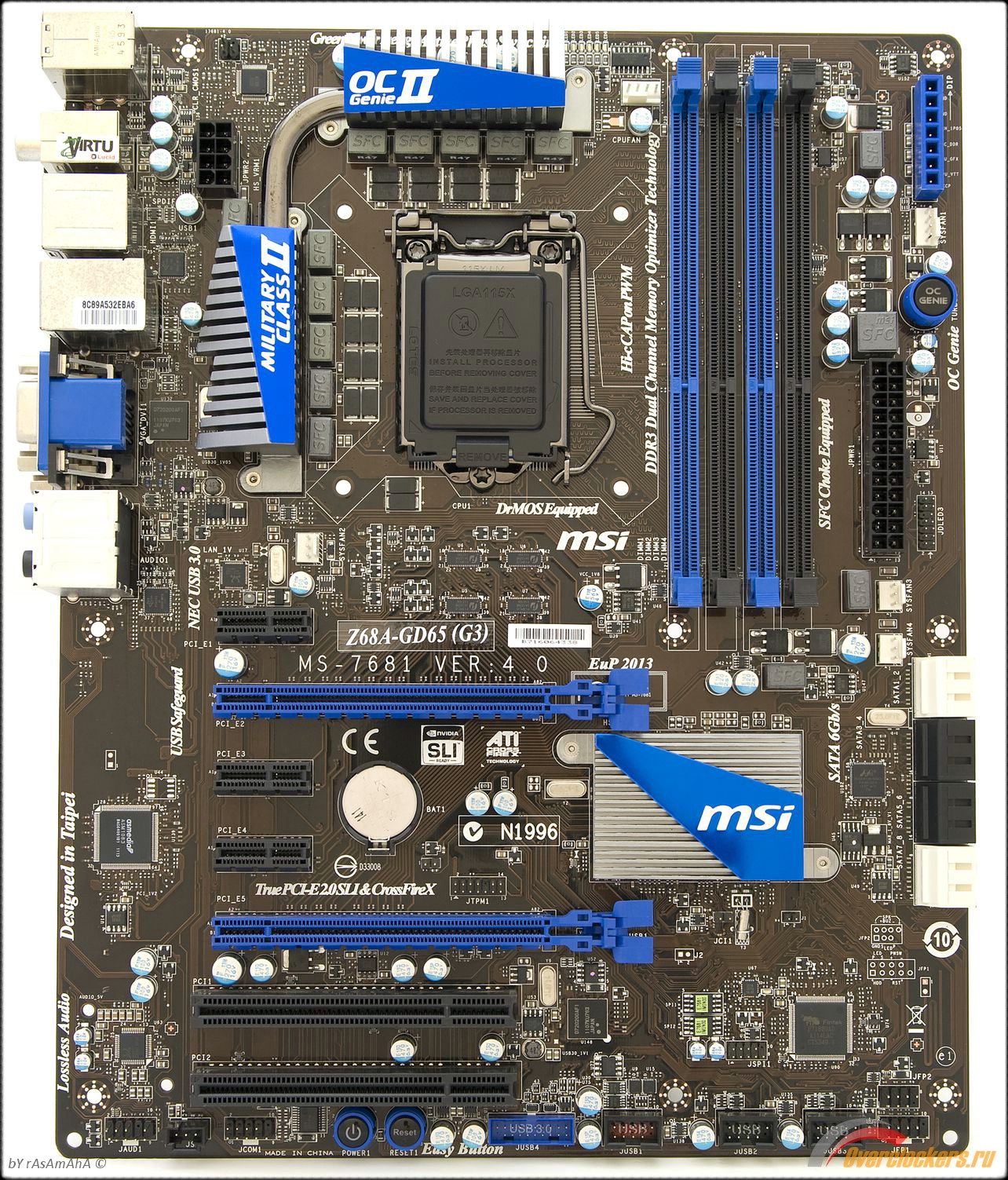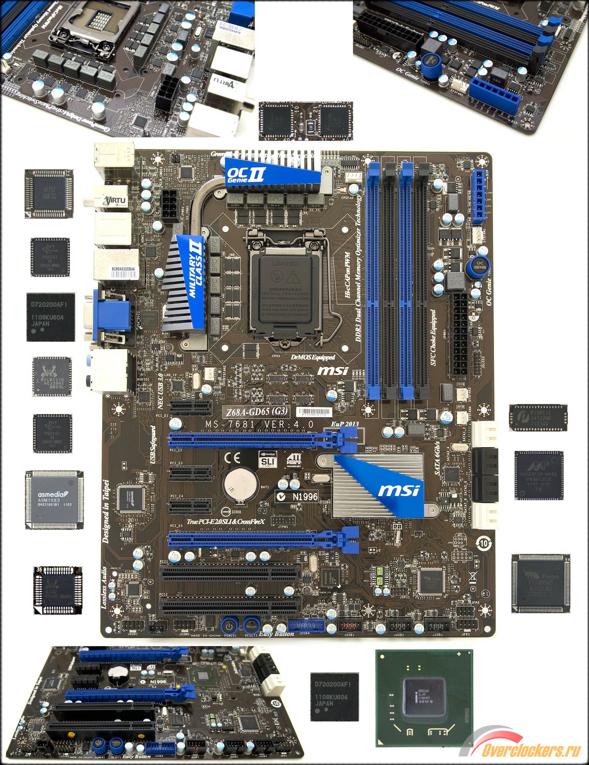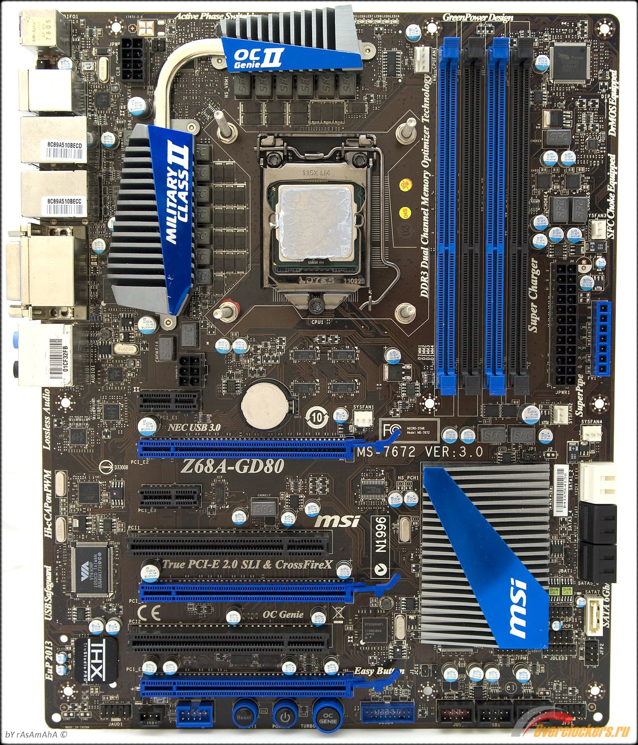 Z68A-G43, Z68A-G45, Z68A-GD55 B3/G3, Z68A-GD65 B3/G3, Z68A-GD80 B3/G3.Z68A-G43 плата низкобюджетная, лишенная множества фирменных технологий, но вполне удовлетворяющая современным требованиям. USB 3.0 на ней есть, что не может не радовать, четыре фазы справятся с номинальным режимом, но в таком случае о разгоне думать не стоит, сами процессоры не очень к этому расположены из-за заблокированного множителя и крайне негативном отношении к повышению частоты шины. Полагаю, что память до частоты 2ххх МГц будет на ней работать так же, как и на самой дорогой материнской плате. Нет второй микросхемы BIOS’a, ну не беда, один бы довели до законченности.