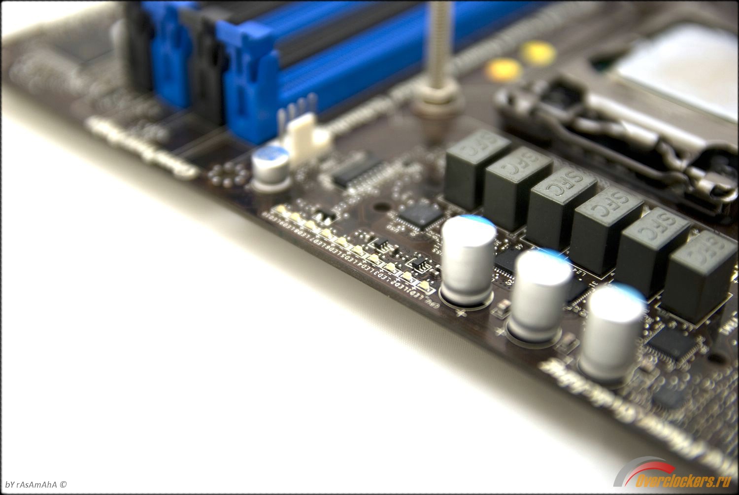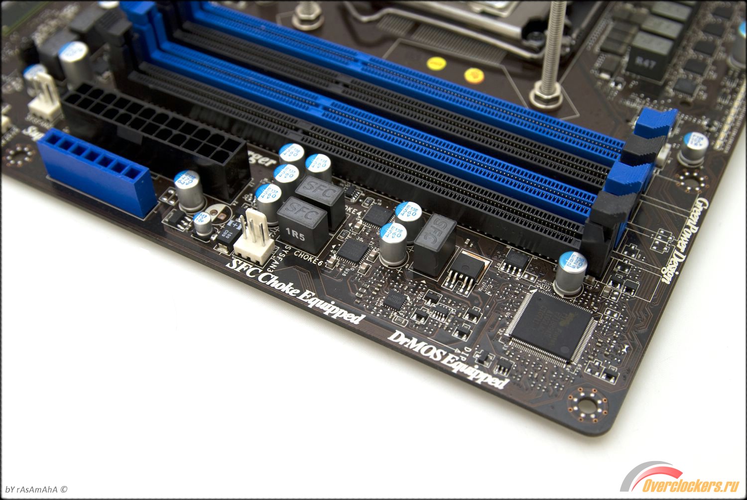 Помимо технологии Dr.Mos, платы комплектуются качественной обвязкой фаз: танталовыми конденсаторами и дросселями с ферритовым стержнем.