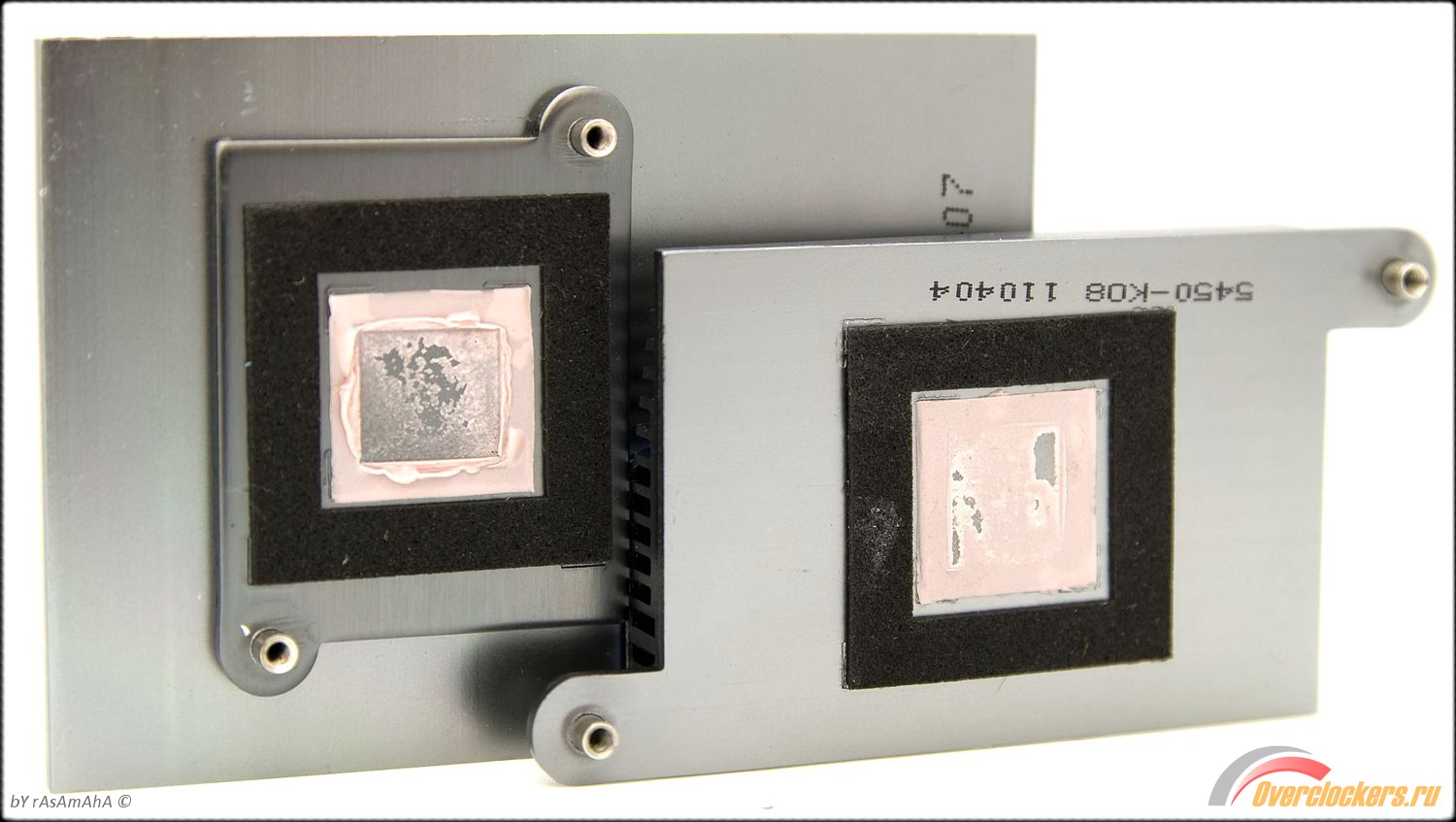 Левый, не в плане происхождения, а на иллюстрации ниже, радиатор GD80. Он немного больше, чем аналогичный у GD65. Как можно будет убедиться позже, главным нагревательным местом в системе Ivy Bridge стал PCH. Его температура даже выше, чем у радиаторов системы питания.