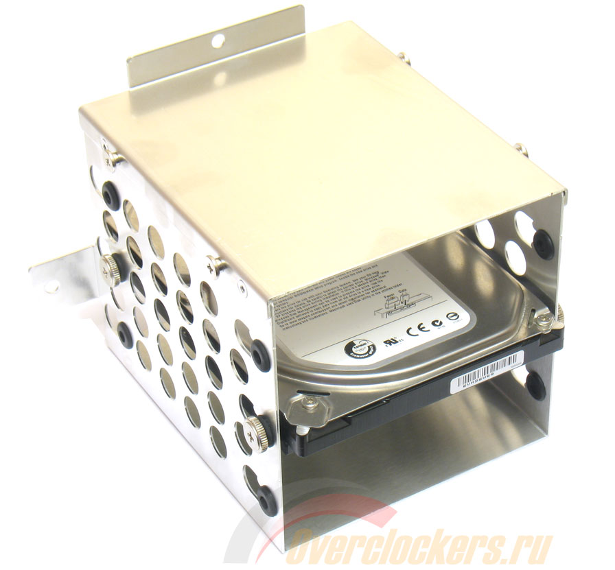 Корпус поддерживает установку 2.5" устройств в количестве четырех штук. Устройства крепятся к днищу корпуса входящими в комплект поставки винтами. К сожалению, у меня не оказалось в наличии подобных устройств и установку их пришлось отложить...