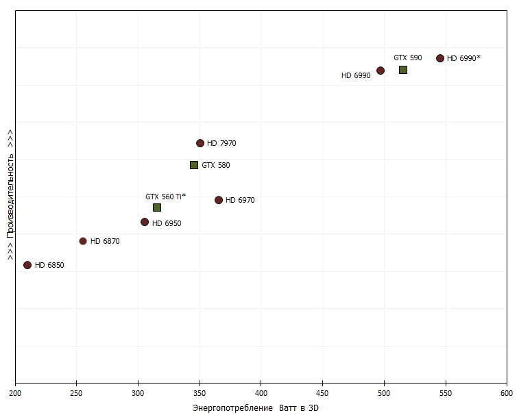 Итоговые результаты, откровенно говоря, разочаровывают, но, может быть, сам подход к оценке HD 7970 неправилен? 2011 год был годом энергоэффективности, любой производитель считал за честь объявить о достижениях на этом фронте.