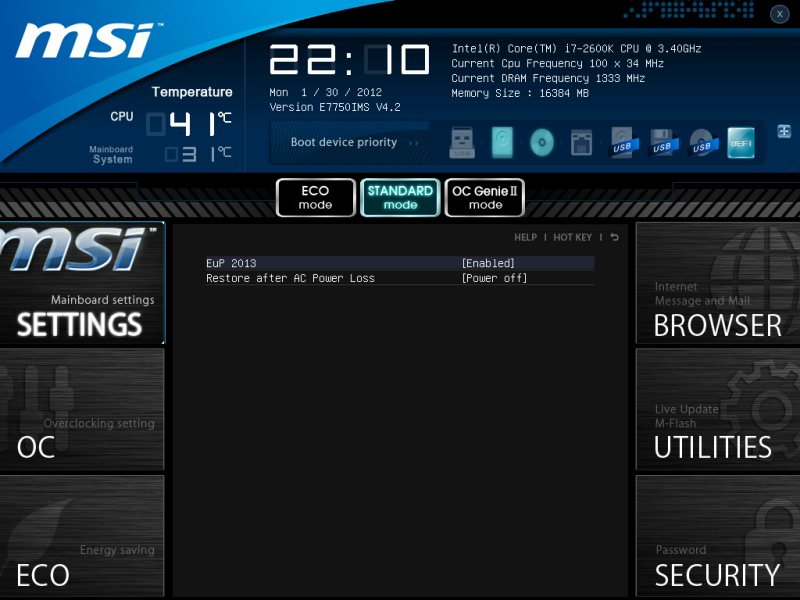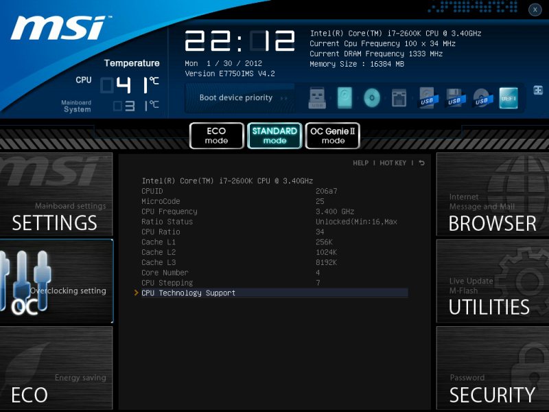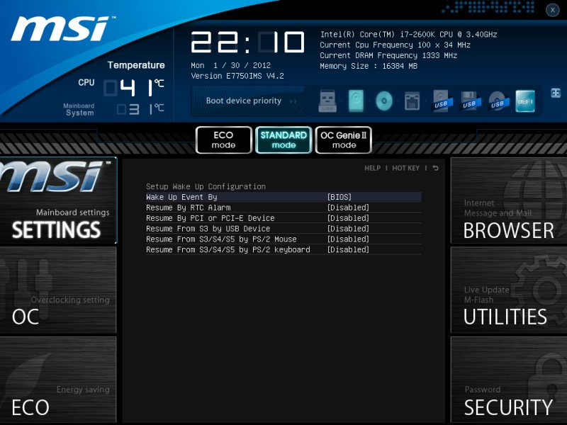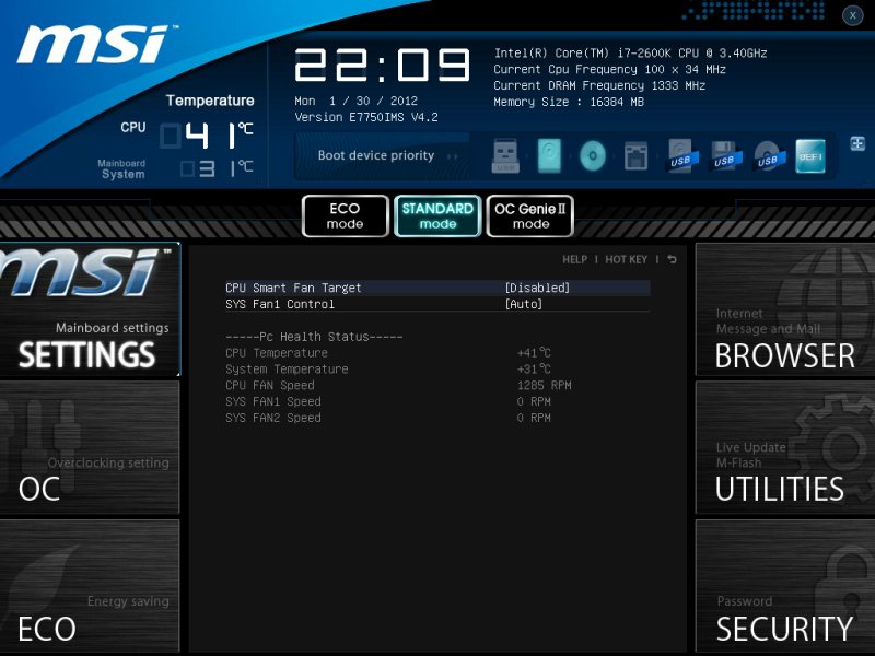 Запускаем систему и нажимаем кнопку Del. Вот так чудо от компании MSI. Красочная графическая оболочка и UEFI BIOS с элементами анимации. Всю эту прелесть можно увидеть на приведённом ниже видеоролике.