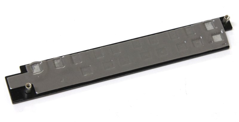 Это обычная чёрная пластинка с двумя стальными втулками-направляющими для крепления. Здесь используется термопрокладка серого цвета. Налицо явное несоответствие. Нет, не в цветности термоинтерфейсов, а в устройствах отвода тепла. Получается, что силовые элементы греются гораздо больше с лицевой стороны, чем с обратной?