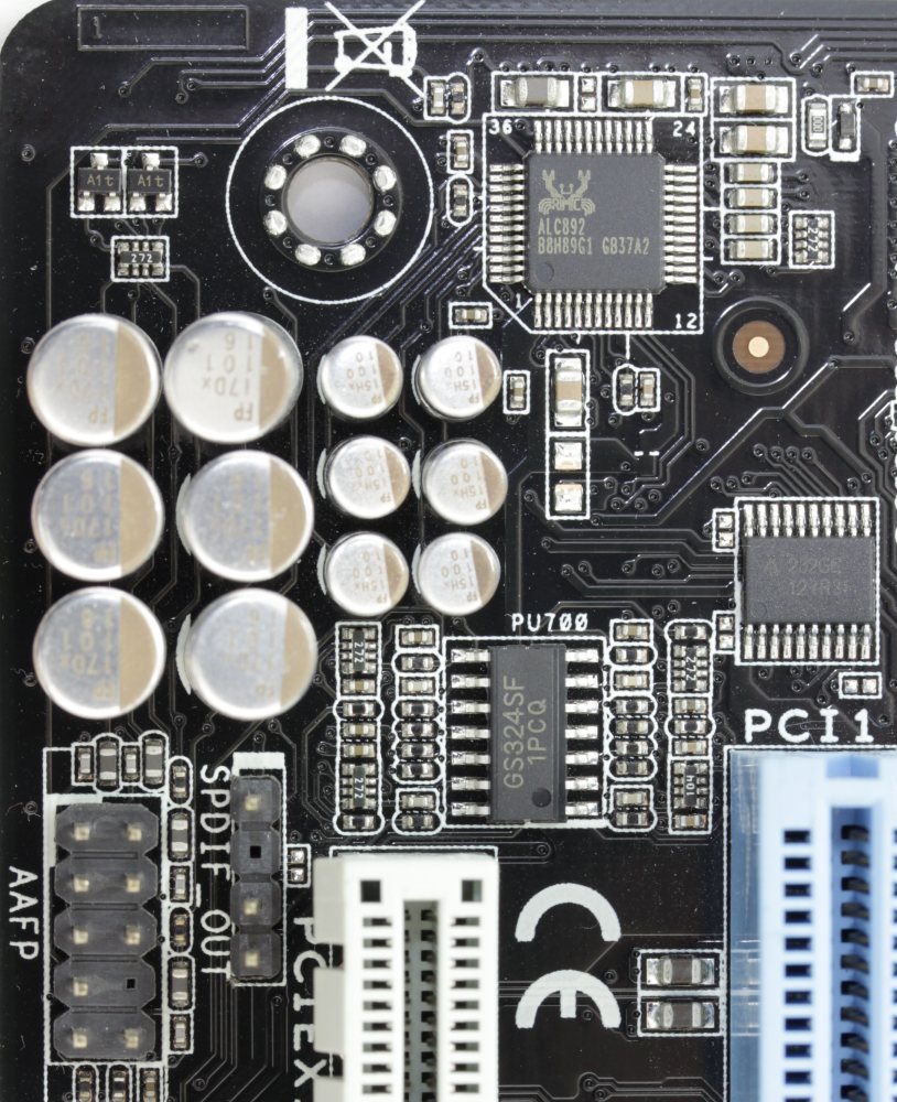А в левом нижнем углу - микросхема звукового кодека Realtek ALC892.