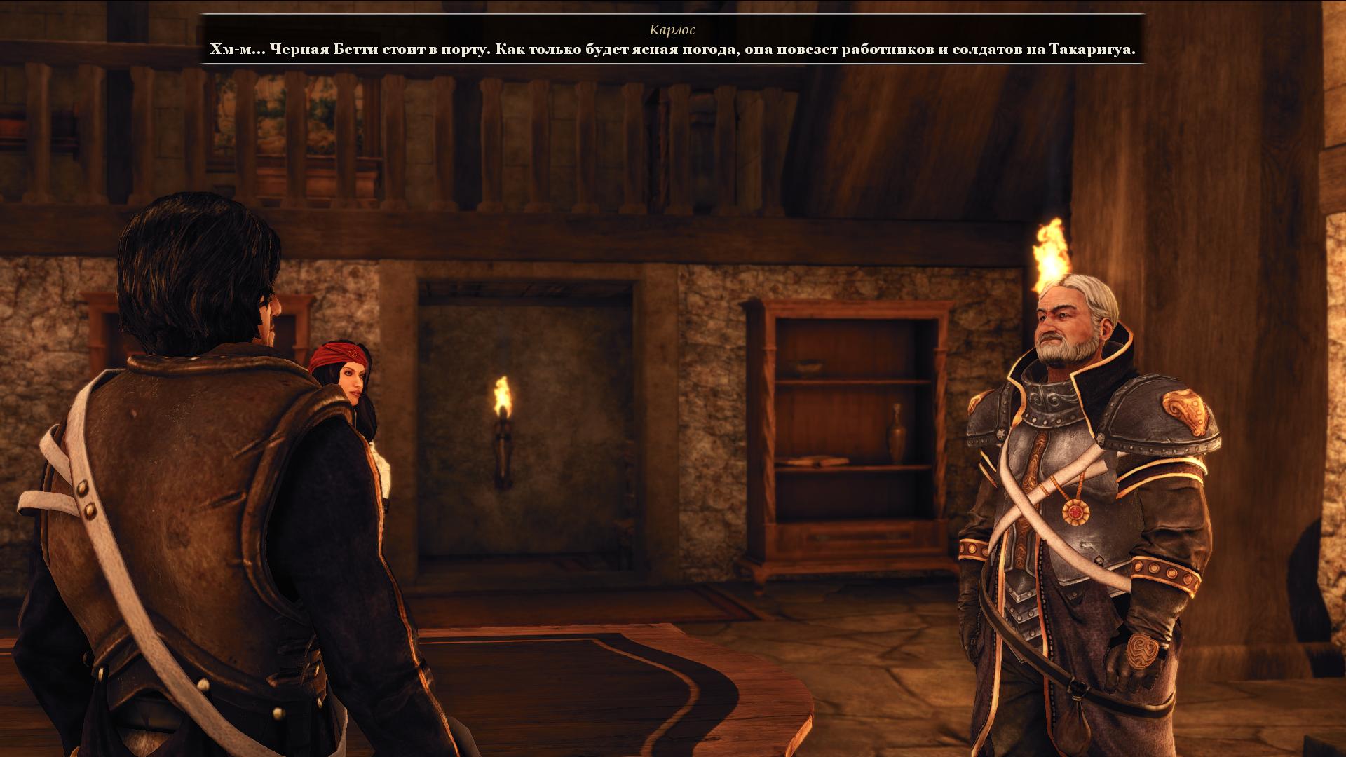 В большом холле персонаж застал коменданта Карлоса, беседующего с капитаном корабля «Черная Бетти» - Себастьяном. Из этой беседы стало ясно, что за пределами Кальдеры между собой воюют два титана, и когда один из них победит, то сразу обрушится на город. Чтобы не дожидаться этого страшного дня Высочайший Совет Инквизиции принял решение эвакуировать последний оплот людей в Новый Свет.