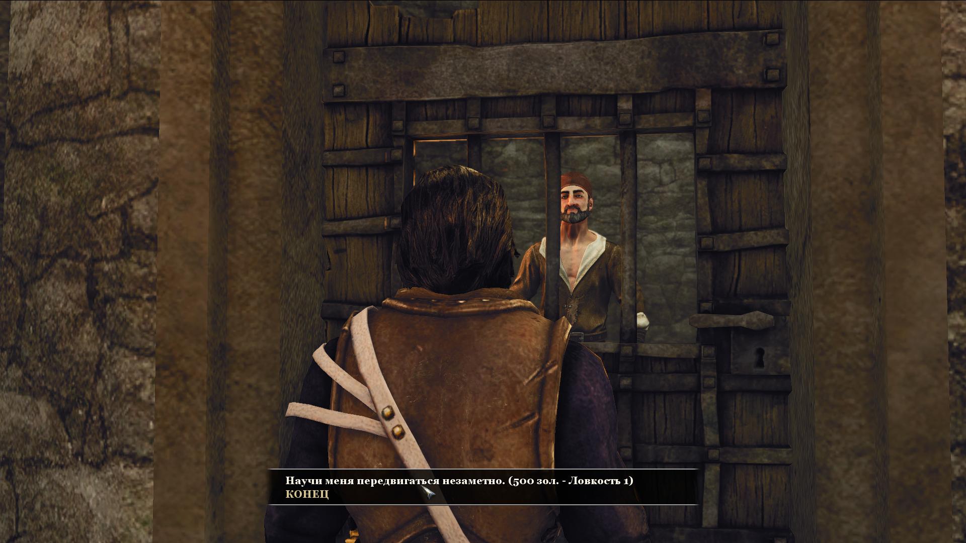 В местной тюрьме оказался вор Ларго, который после увлекательной беседы о достопримечательностях под условным названием «все что плохо лежит» за 500 золотых обучил героя первому уровню ловкости, который позволяет бесшумно передвигаться.