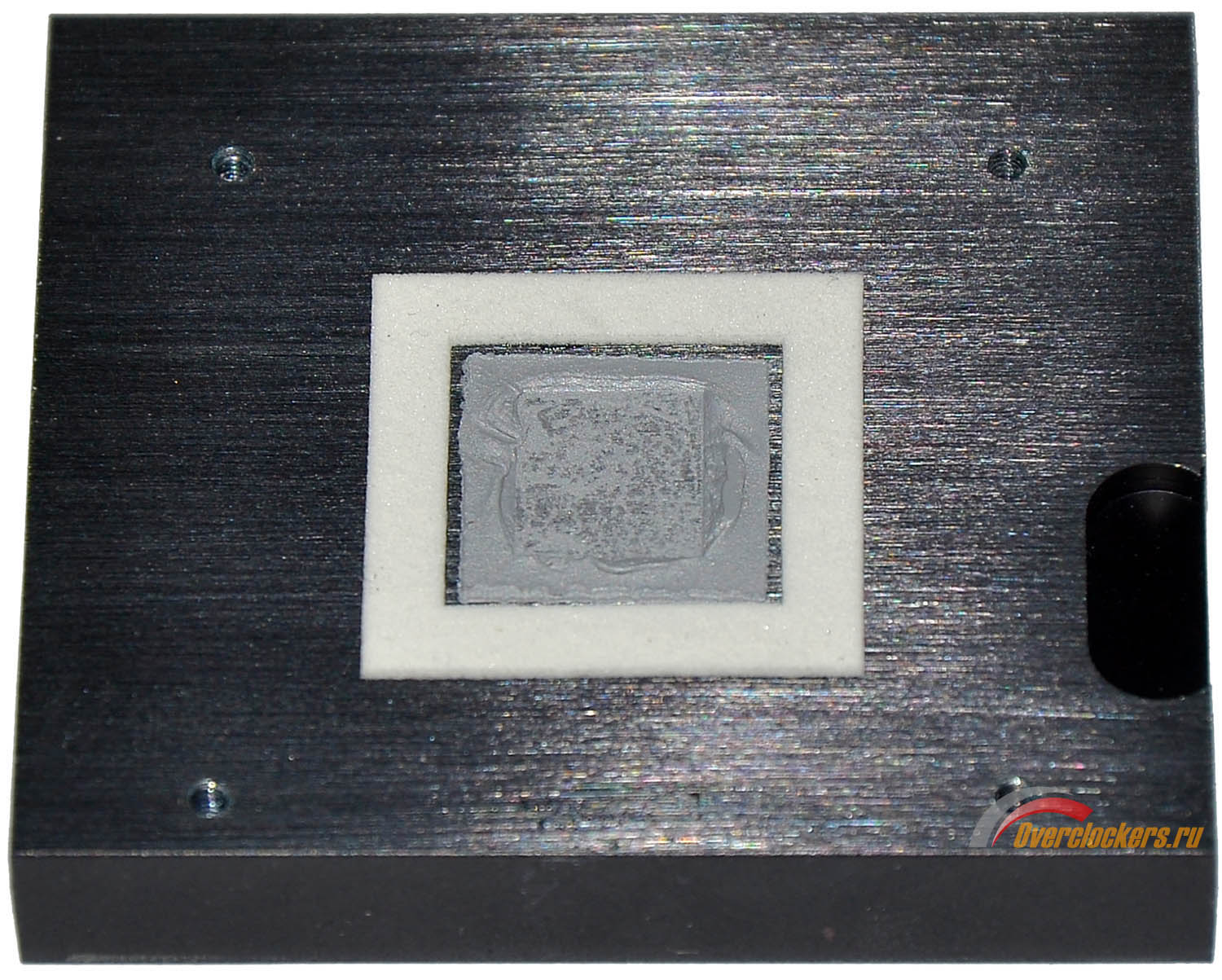 В данном случае можно встретить густую термопасту, которая легко оттирается ватным диском. Есть прокладка, частично защищающая кристалл от сколов. Интересно, что используется крепление радиатора сразу на четыре винта, а не на два, как это обычно бывает с охлаждением PCH.