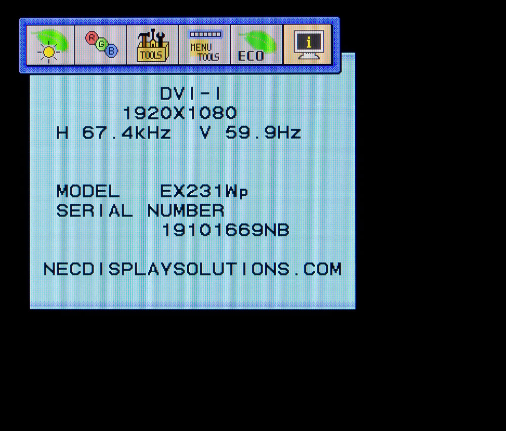 Доступ к сервис-меню, как и во всех рассмотренных мониторах NEC, найден не был. Модель включалась при любом задействованном сочетании клавиш, но это не приводило к положительным результатам.