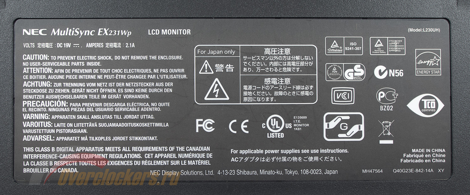 По наклейке на корпусе из интересного можно узнать лишь о происхождение монитора – Made in China. Вся остальная информация так или иначе относится к различным стандартам безопасности, требованиям по энергопитания и другим подобным фактам. Данных по ревизии и дате производства не обнаружено.