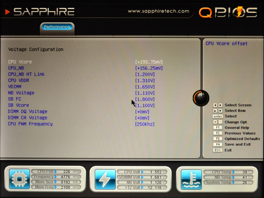 Защита материнской платы перестала срабатывать при установке в BIOS напряжения питания 1.4875 В. Итоговое значение стабильного напряжения не так уж и мало, оно находится близко к результату M5A99X EVO. Схожим осталось и поведение платы при превышении данной отметки - начинается сброс частоты работы и напряжения питания. Отмечу, что, как и в случае с разгоном Phenom II X6, процесс разгона сопровождался сильным писком дросселей, и не покидало ощущение, что «вот-вот рванет».