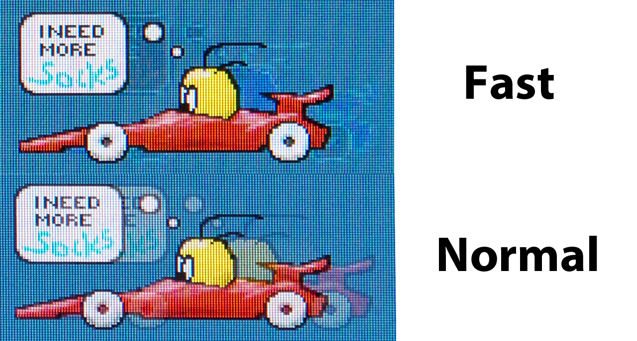 В рассматриваемом мониторе установлена AH-IPS матрица с заявленным временем отклика в 5 мс, измеренные по методике Gray-to-Gray и 14 мс по ISO. У LG IPS277L в основном меню присутствует настройка скорости матрицы, что позволяет сделать вывод об использовании технологии разгона OverDrive. Рассмотрим на примере, к чему приводят заводские установки: