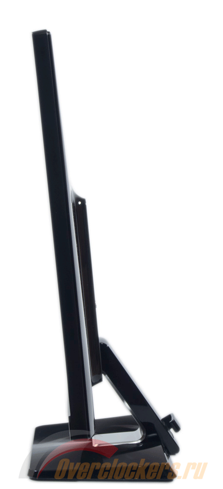 Переходя к украшательствам корпуса, несомненно, стоит отметить изогнутую накладку аля алюминий в центральной колонне и черную полоску из пластика, выполненную в стандартной для многих устройств (не только мониторов) манере – под шлифованный металл. Выглядит все это вполне себе симпатично и совсем не дешево. Хотя о вкусах не спорят.