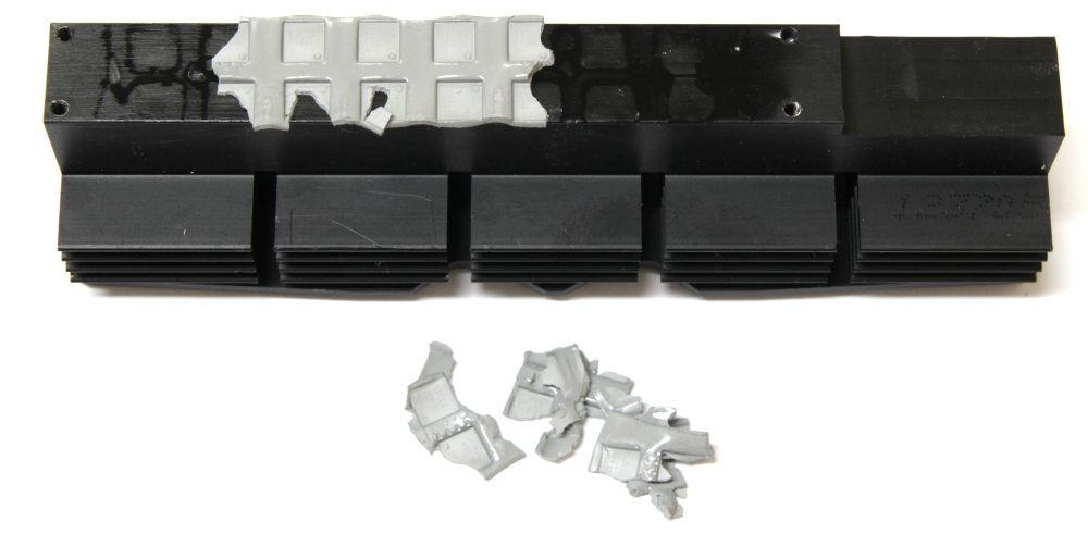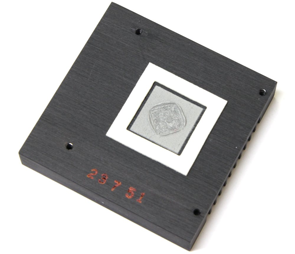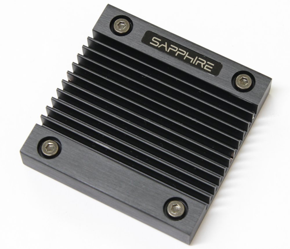 Он изготовлен из алюминиевого сплава и крепится с обратной стороны при помощи сразу четырех подпружиненных винтов. В качестве термоинтерфейса используется хрупкое пластичное вещество, которое мгновенно ломается при любых воздействиях.