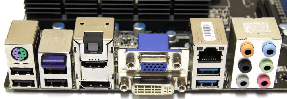 | Разъемы задней панели | 1x PS/2 клавиатура или мышь 4x USB 2.0/1.1 2х USB 3.0 1x DVI-D 1x D-Sub 1x HDMI 1x Display Port 1x RJ45 1x optical S/PDIF Out 6x 3.5 мм Jack 1х антенна-индикатор Bluetooth |