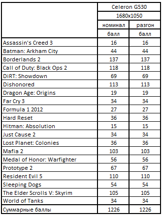- быстрее Celeron G530 на 4% - 19% в 4 играх.