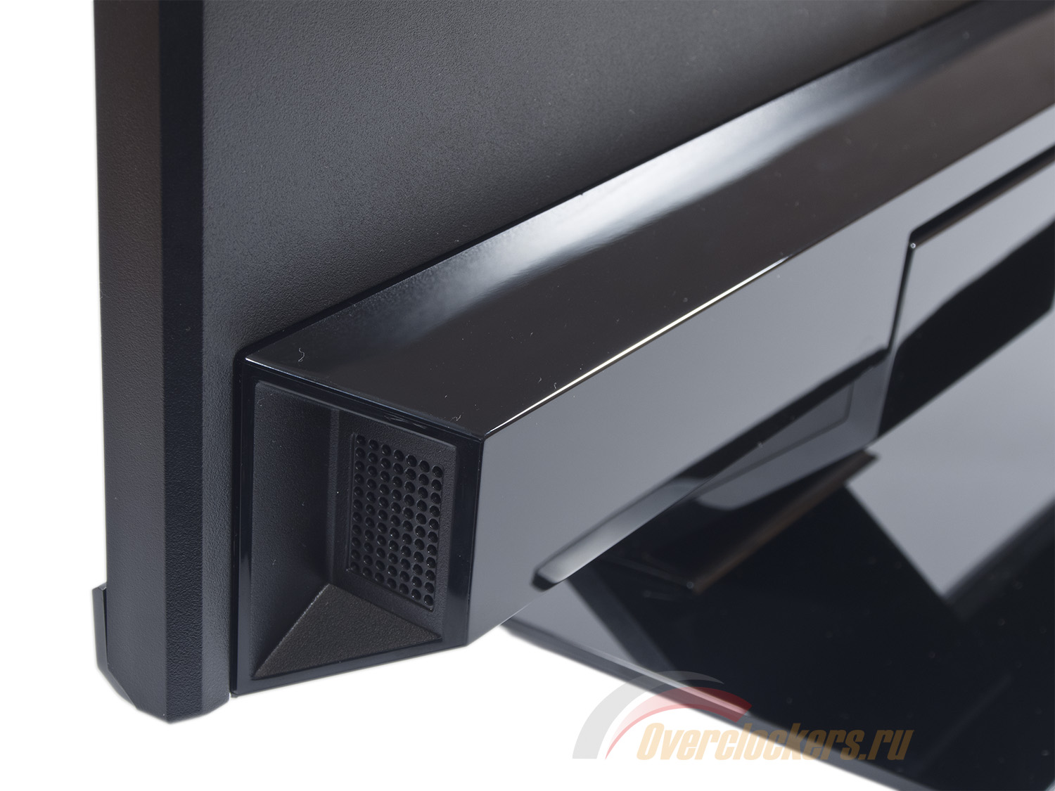 Присутствует и встроенная акустическая система. Два внушительных по размерам динамика расположены по обе стороны корпуса. Правда, звучат они, как и предполагалось, не ахти как. Максимальная громкость невысока, а низкие и средние частоты, можно сказать, отсутствуют.