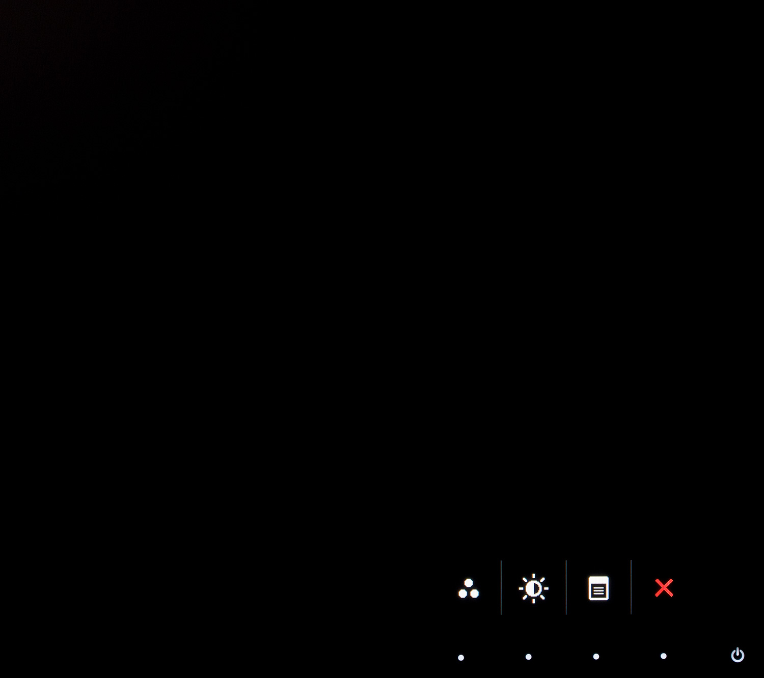 Управление монитором производится посредством пяти сенсорных клавиш, одной из которых является кнопка включения. Никаких опознавательных знаков кроме белых точек пользователь не увидит, но здесь они и не нужны. Как и у рассмотренных ранее мониторов Dell, у U2913WM кнопки с изменяемыми функциями. Это значит, что перед каждой на экране высвечивается иконка действия, которое в данный момент осуществляется с ее помощью.