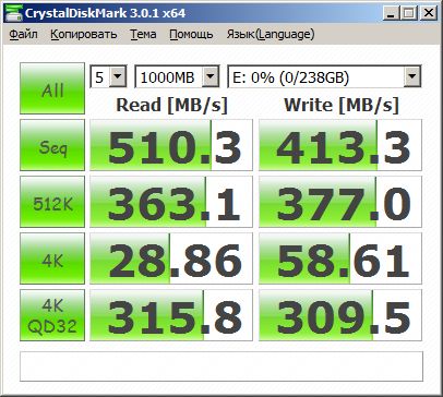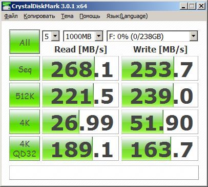 | Plextor M5S 256 Гбайт | 0.52 | 1.39 | 3.92 | 1.24 |