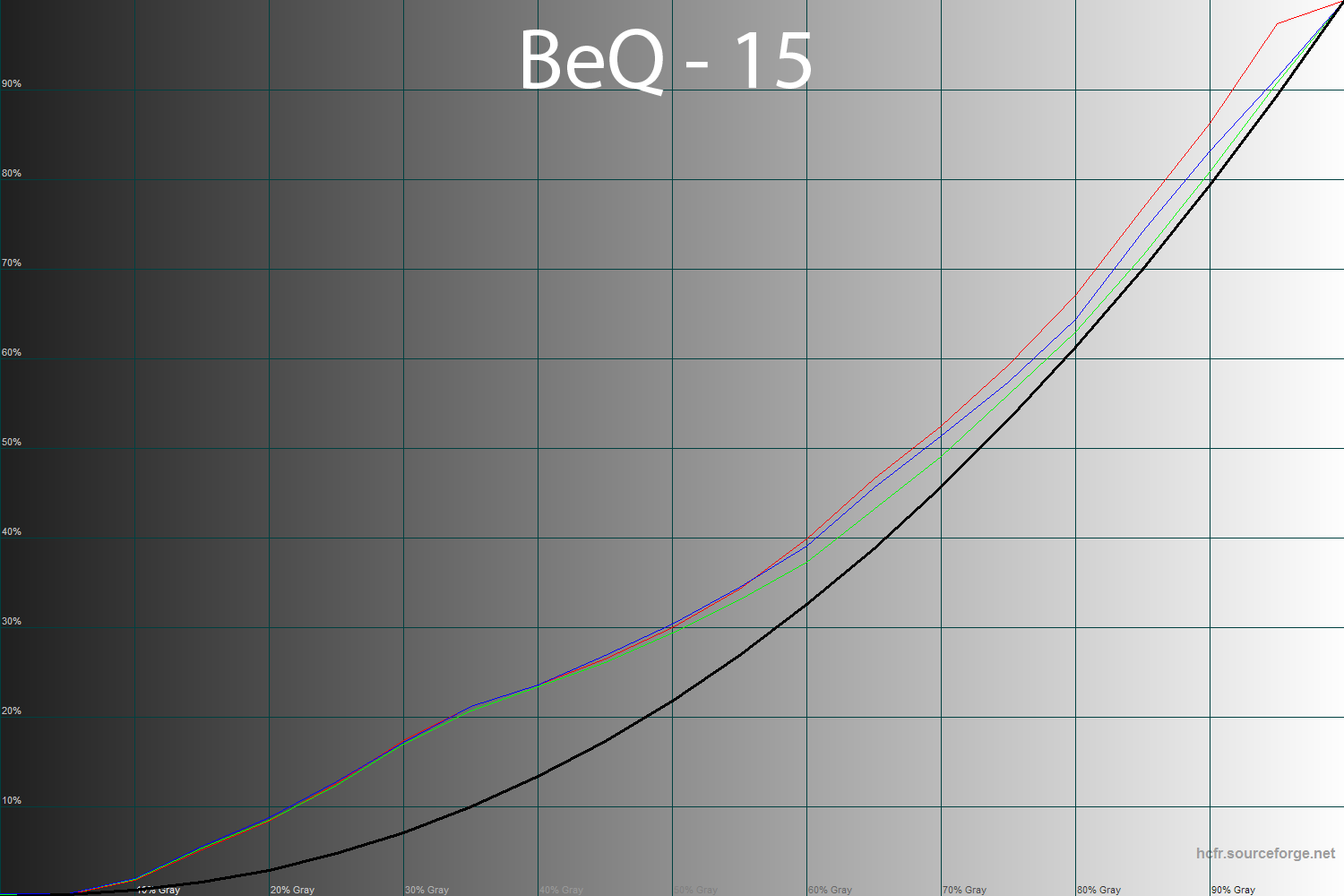 С помощью программы HCFR Colormeter и откалиброванного колориметра X-Rite Display Pro мною были изучены гамма-кривые во всех рассмотренных выше режимах, как изначально предустановленных, так и специально разработанных. Кроме того, по произведенным измерениям можно оценить расхождение серого клина (точек черно-белого градиента) на CIE диаграмме и сделать выводы о преобладании того или иного паразитного оттенка, либо его таковом отсутствии.