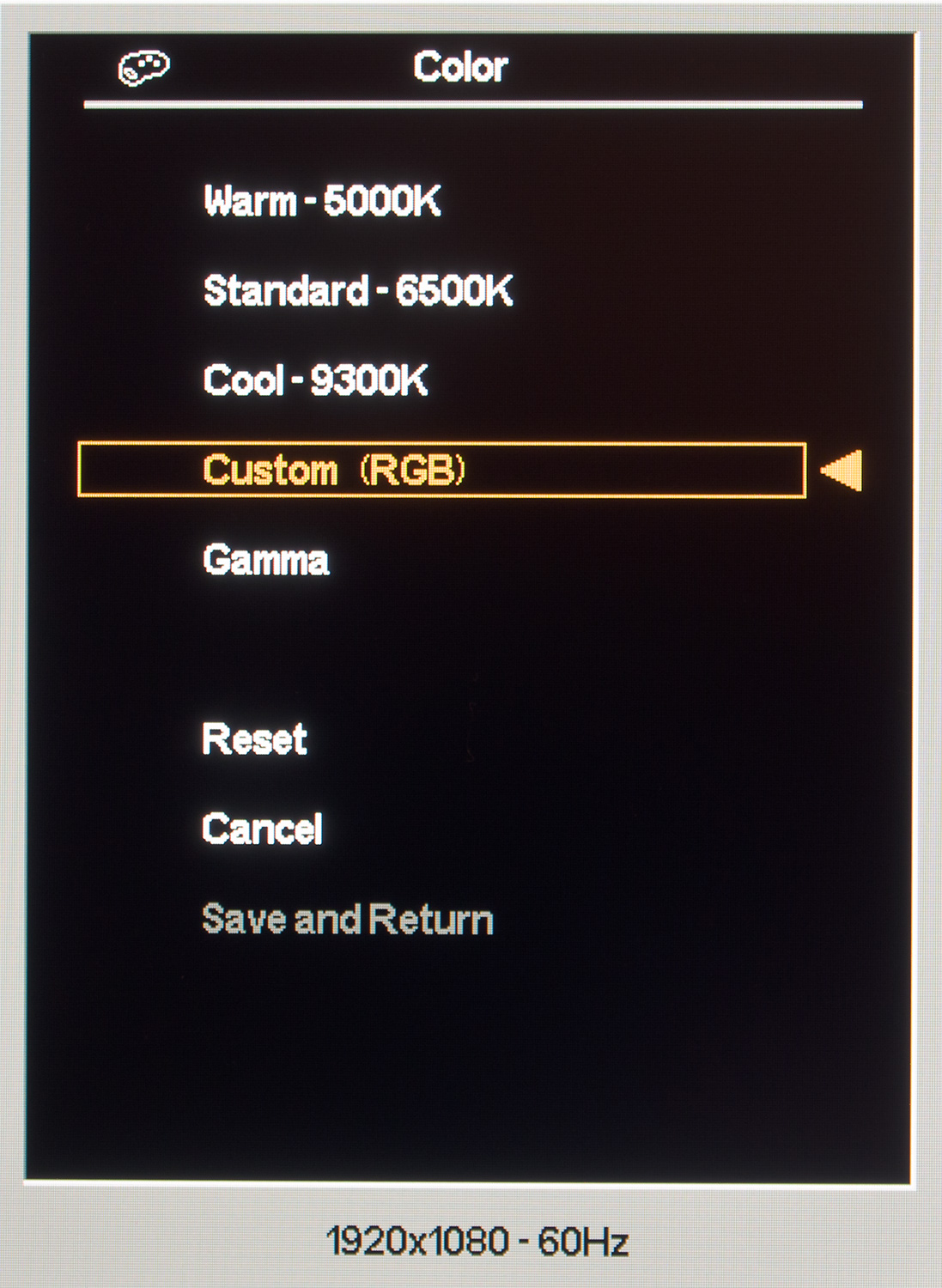 Раздел Color содержит несколько большее количество настроек. Перед вами предстанет пара пресетов цветовой температуры, а чуть ниже настройки гаммы. Каких-либо предустановленных режимов изображения у монитора не предусмотрено, что всегда мною воспринималось как большой плюс – и вам того же желаю.
