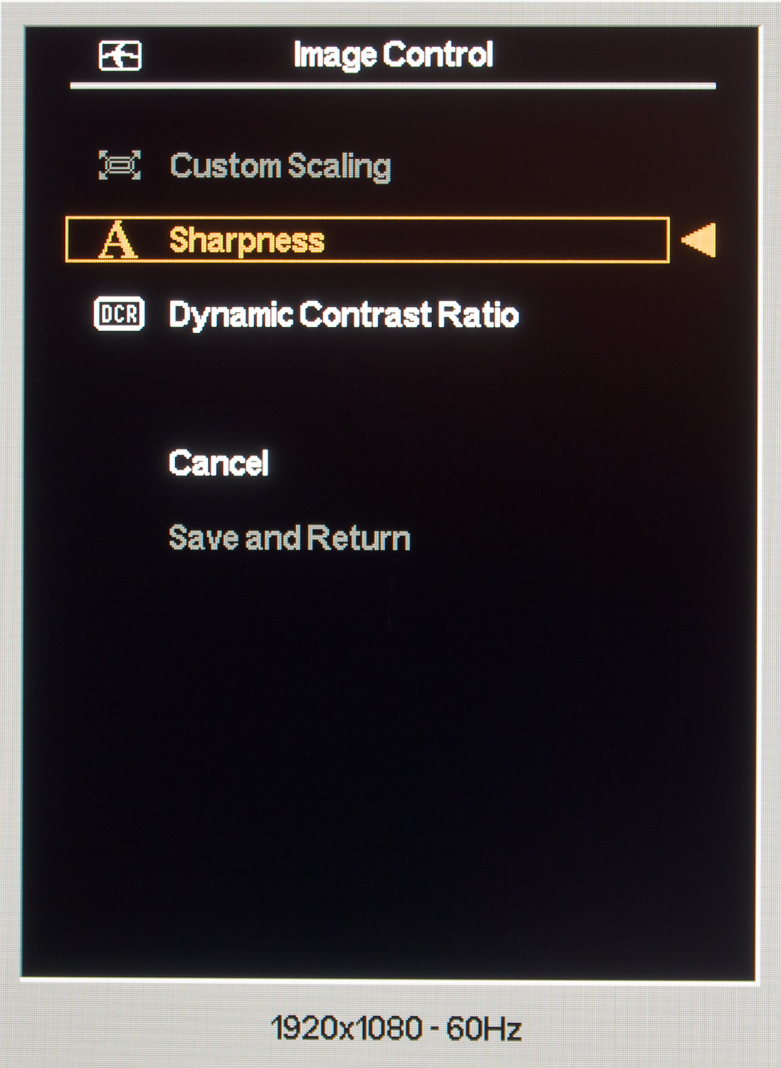 Далее нас встречает раздел Image Control, в котором пользователь может определить режим работы скалера (только при D-Sub подключении), отрегулировать резкость и включить динамическую контрастность.