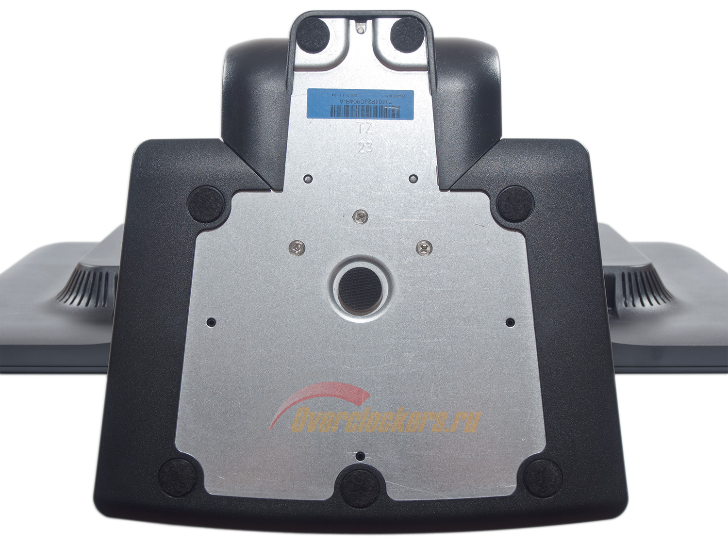 Центральная колонна, как было сказано ранее, приделана к корпусу на новый манер – вплотную, с практически незаметным зазором. Если ZR2330w приподнять на подставке, то можно будет заметить два паза. Чтобы добраться до VESA крепления, необходимо перевернуть панель в портретный режим, что предоставляет доступ к одному-единственному винту, который и удерживает корпус на колонне.